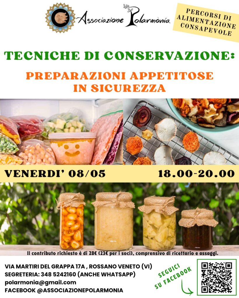 Venerdì 8 maggio dalle 18.00 alle 20.00 nuovo appuntamento di Alimentazione consapevole: tecniche di conservazione: preparazioni appetitose in sicurezza.